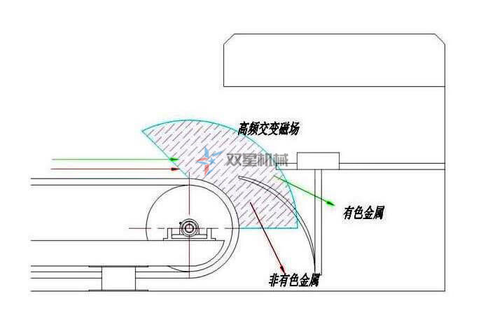 渦電流分選機(jī),又叫渦流分選機(jī)、金屬分選機(jī)等,可從各種金屬破碎混合物料中分選出銅和鋁等非鐵金屬,也可在環(huán)境保護(hù)領(lǐng)域,特別是在非鐵金屬再生行業(yè)推廣應(yīng)用。渦流分選機(jī)利用導(dǎo)體在高頻交變磁場中產(chǎn)生感應(yīng)電流的原理進(jìn)行設(shè)計(jì)的。工作時(shí),在分選磁輥表面產(chǎn)生高頻交變的磁場,當(dāng)有導(dǎo)電性的有色金屬經(jīng)過磁場時(shí),會(huì)在有色金屬內(nèi)感應(yīng)出渦電流,此渦電流本身會(huì)產(chǎn)生與原磁場方向相反的磁場,有色金屬(如銅、鋁等)則會(huì)因?yàn)榇艌龅呐懦饬ψ饔枚仄溥\(yùn)輸方向向前飛躍,實(shí)現(xiàn)與其他非導(dǎo)體物或非金屬類物質(zhì)的分離,達(dá)到分選的目的。